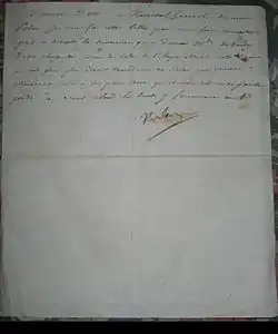 The letter in which Napoleon accepted the resignation of Mlle. de Vaudey