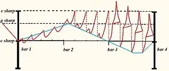 Graph of semiquaver motif, bars 1–4, after Hugo Leichtentritt