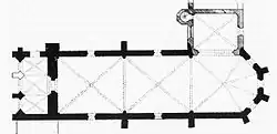 The plan of the mosque from above, drawn by French historian Camille Enlart in her work "L'art gothique et la renaissance en Chypre" (Gothic Renaissance Art in Cyprus) in year 1899.
