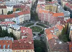 On Churchill Square, near the main railway station, is the Prague University of Economics, the General Pension Establishment, dating from 1934 and designed by Havlíček and Honzík and the Churchill Statue.