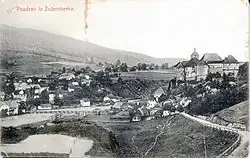 The Romans built a road through the region. Žužemberk was first mentioned in written documents dating to 1246. In 1399 it was granted market rights. The castle is believed to date back to around 1000, and the castle chapel dedicated to St. Ulrich was built in 1046.[2] The village that grew around the castle was located at an intersection, and most of its inhabitants were craftsmen or peasants who traded their goods and held fairs.[2]