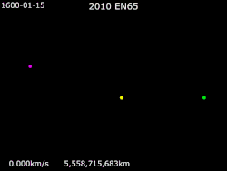 - ^ a b Lowe, A.; Helin, E. F.; Pravdo, S.; Lawrence, K.; Hicks, M.; Thicksten, R.; Rabinowitz, D.; Tourtellotte, S.; Marsden, B. G. (7 May 2010). "2010 EN65". Minor Planet Electronic Circular. 2010-J33.