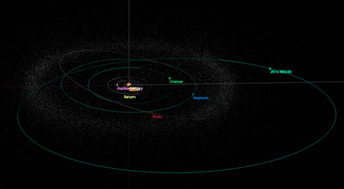 2015 RR245 orbit diagram with the Kuiper belt and outer planet orbits shown