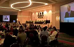 Doug Jones speaking at the 100 Black Men of America annual gala in 2018.