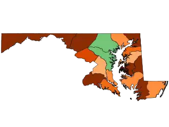 Baltimore (City and County) 643 38.16% 1,042 61.84% -499 -23.68% 1,685