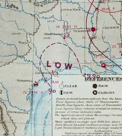 On September 2, a tropical storm developed in the Bay of Campeche. Moving generally towards the west-northwest, the storm reached a peak intensity of 60 mph (95 km/h) on September 4, while approaching northeastern Mexico. Shortly thereafter, the cyclone made landfall in northern Tamaulipas and weakened into a tropical depression on September 5, several hours after crossing into Texas. Moving northward through the state, the storm dissipated on September 7, while located to the southwest of the Dallas–Fort Worth area.[3] Chenoweth argued that this system developed as a tropical depression near the central Gulf of Mexico on September 1 and became much more intense, reaching Category 3 intensity on September 5. The system struck south Texas later that day.[5]