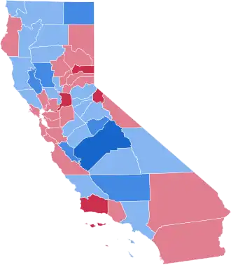 | Contra Costa | 1,184 | 58.58% | 837 | 41.42% | 0 | 0.00% | 0 | 0.00% | 347 | 17.17% | 2,021 |
