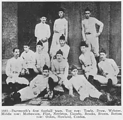 2. ^ "Amherst Vs. Dartmouth—Game Unfinished". The Boston Daily Globe. Boston, Massachusetts. November 25, 1881. p. 2. Retrieved March 19, 2022 – via Newspapers.com Open access icon.