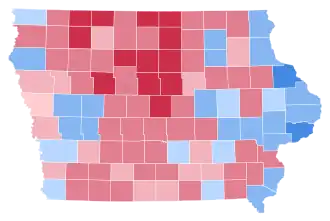 | Iowa | 1,672 | 42.15% | 2,157 | 54.37% | 89 | 2.24% | 49 | 1.24% | -485 | -12.23% | 3,967 |