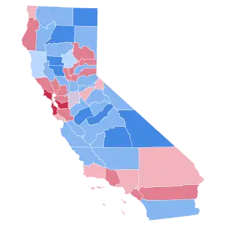 | San Francisco | 31,041 | 49.20% | 30,649 | 48.58% | 109 | 0.17% | 320 | 0.51% | 784 | 1.24% | 183 | 0.29% | 0 | 0.00% | 392 | 0.62% | 63,086 |