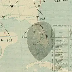 - ^ a b c Henry, A. J. (August 1898). "The Weather of the Month". Monthly Weather Review. XXVI (8): 350. Bibcode:1898MWRv...26..346H. doi:10.1175/1520-0493(1898)26[346:TWOTM]2.0.CO;2.