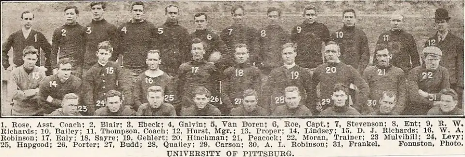 - ^ "The Football Team". Courant. Vol. 25, no. 1. Western University of Pennsylvania. October 1909. p. 19. Retrieved May 27, 2020.