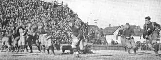 As the work at Whitmore Lake concluded, the Detroit Free Press wrote that the team was "rounding into form rapidly" and looked "like a machine."[15] The Free Press opined that the backfield showed plenty of speed, and the line appeared to be Michigan's strongest in years.[16] Pre-season practice continued at Ferry Field during the first week of October.[17][18][19][20]