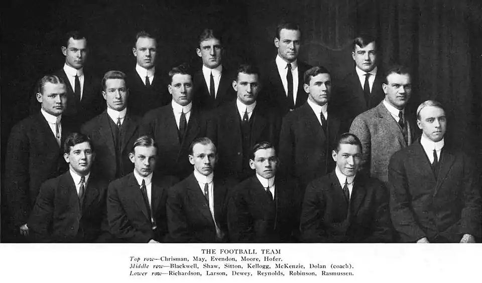 Backfield substitutes: Charles "Shrimp" Reynolds (QB), "Rasty" Rasmussen (FB), "Toots" Richardson (HB)