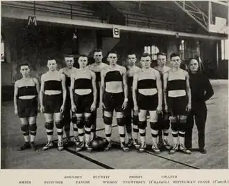 The 1918–19 season for the Illinois Fighting Illini men's basketball team, was the lowest point for head coach Ralph Jones during his tenure at the University of Illinois. Jones experienced his only losing season as a Big Ten coach, as a matter of fact, this was the only losing season he would have in career spanning nearly 35 years. Jones, who coached the Purdue Boilermakers men's basketball team for three seasons prior to coming to Illinois, had never lost more than 6 games during any conference campaign.[1] The record the Illini would possess at the conclusion of the 1918–19 season would overall be 6 wins, 8 losses with a 6 win 6 loss conference mark. The starting lineup included captain Burt Ingwersen, Benjamin Mittleman and Ralph Fletcher at the forward positions, K.L. Wilson at center, and W.K. Kopp and P.C. Taylor as guards.[2]