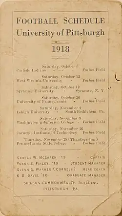 8. ^ "The 1918 Eleven". The Owl. University of Pittsburgh. 1920. p. 243. Retrieved December 3, 2020.