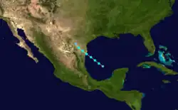 The storm made landfall in northern Mexico, just south of the Texas border,[6] shortly after the warnings were extended.[2] Around the time the storm made landfall, a pressure of 1002 mbar (hPa) was recorded in Brownsville, Texas.[9] The storm dissipated later that day over southwestern Texas.[6] No known damage was caused as a result of this storm and storm-force winds were only recorded over a small area on the Texas coastline.[2] The storm produced minor rainfall over south Texas with Brownsville recording 0.56 in (14 mm) and Corpus Christi recording 0.95 in (24.1 in). Winds up to 43 mph (69 km/h) were reported in Brownsville around 1 am CST (0800 UTC) on September 7.[9]
