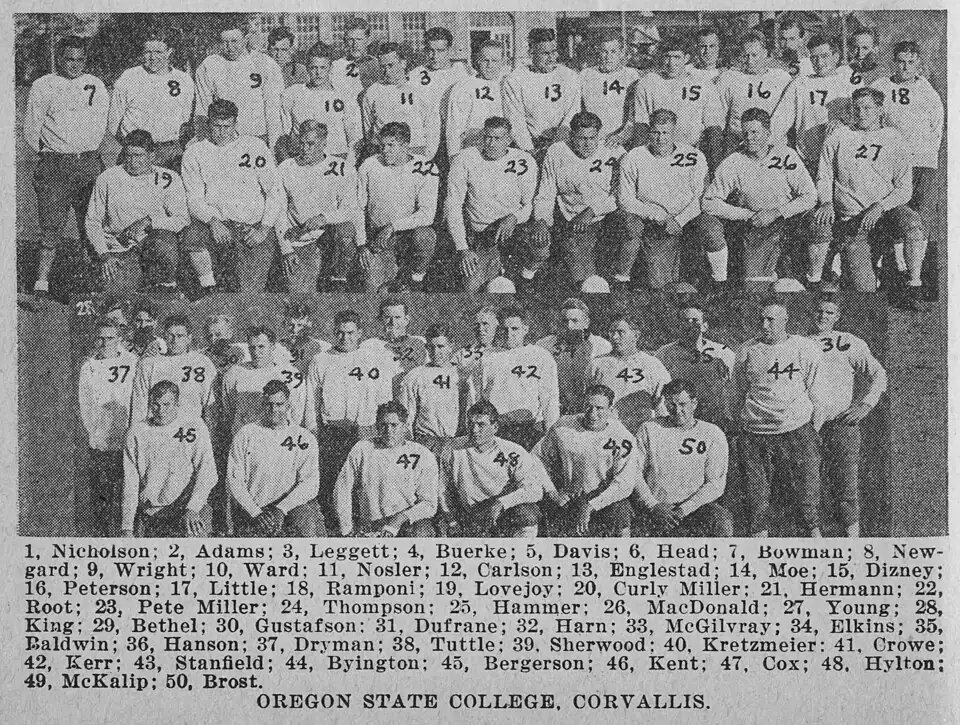 Team photo of the 1930 Oregon State Beavers varsity football team