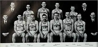 The 1938-39 season was year number three for head coach Doug Mills. Overall the team regrouped from a miserable eighth-place finish in the Big Ten a year earlier by winning 9 of their 10 home games only losing to conference rival Indiana. Unfortunately for the Fighting Illini they finished with a 5-5 record on the road to finish in third place overall in conference action. Mills' Illinois Fighting Illini men's basketball team featured only 5 returning letterman. Along with team captain Tom Nisbit, the Illini also featured a starting lineup of Lewis Dehner at the center position, John Drish, Joe Frank and William Hapac at forward and George Wardley, and Colin Handlon at guard.[1]