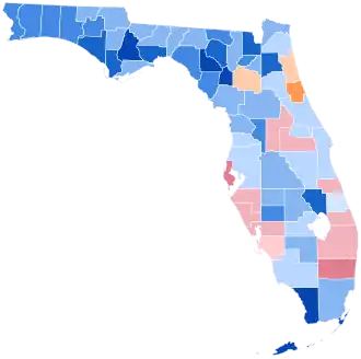 1. ^ William Howard Taft carried Calhoun County in 1908; Warren G. Harding in 1920 and Calvin Coolidge in 1924 each carried three counties in South Florida, and Herbert Hoover in 1928 carried the state and 41 of 67 counties.