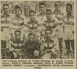 | Note: Lineup for USM Marengo - Saadi Abdelkader, Moussaoui, Abdesselam, Boukhalfa, Boussad, Djelfi, Ferhat, Tahar, Saadi Ali, Kouider, Guedouche. | ||||