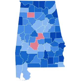 | Cullman | 5,254 | 60.62% | 3,391 | 39.13% | 22 | 0.25% | 1,863 | 21.49% | 8,667 |