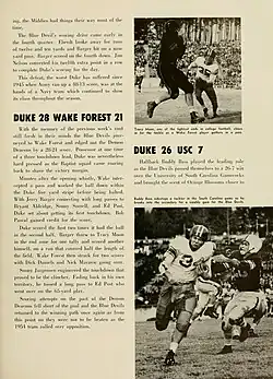 - ^ "Duke's 26–7 victory over Gamecocks bolsters bowl hopes". The Sunday Star. November 21, 1954. Retrieved January 5, 2024 – via Newspapers.com.