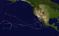 - ^ a b c d e f g h i j k l m n o p q r s t u v w x National Hurricane Center; Hurricane Research Division; Central Pacific Hurricane Center (April 26, 2024). "The Northeast and North Central Pacific hurricane database 1949–2023". United States National Oceanic and Atmospheric Administration's National Weather Service. Archived from the original on May 29, 2024. A guide on how to read the database is available here.