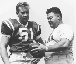 Alex Kroll, who played at center on offense and linebacker on defense, was a consensus first-team pick at center on the 1961 All-America team. He received first-team honors from the American Football Coaches Association, Associated Press, Football Writers Association of America, Newspaper Enterprise Association, and United Press International.[14] With Kroll's strength in the middle of the line, Rutgers used the quarterback sneak as an offensive weapon, scoring seven touchdowns on the play.[1] He was later inducted into the College Football Hall of Fame.[15]
