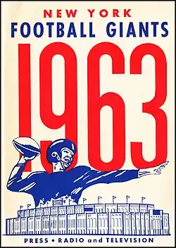 The 1963 New York Giants season was the franchise's 39th season in the National Football League. The Giants won their third consecutive NFL Eastern Conference title with an 11–3 record, their sixth in eight years, but again lost the NFL championship game. This loss was to the Chicago Bears, 14–10 at Wrigley Field, in the Giants' final post-season appearance until 1981.