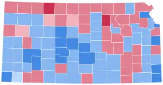 As of the 2024 presidential election, this is the last time the Democratic candidate won Kansas, as well as the following counties: Allen, Barber, Barton, Bourbon, Clark, Comanche, Cowley, Ellsworth, Franklin, Geary, Gove, Grant, Harvey, Haskell, Kearny, Lane, Lyon, McPherson, Montgomery, Morton, Nemaha, Neosho, Osage, Ottawa, Pratt, Russell, Saline, Sedgwick, Sheridan, Sherman, Stanton, Stevens, Thomas and Trego.[5]