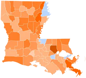 2. ^ a b c d e f g h i j k l m n o p q In this parish where Nixon ran second ahead of Humphrey, margin given is Wallace vote minus Nixon vote and percentage margin is Wallace percentage minus Nixon percentage.