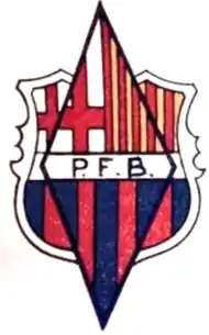 The team gained its own logo in 1971, a design featuring the FC Barcelona crest overlaid with an oversized diamond/rhombus containing the same segments, and "P.F.B." in the central band. The diamond was inspired by the then-logo of FC Barcelona Atlètic, which was simply diamond-shaped. The 1971 logo was retained by the team until at least 1994 (when it was Club Femení Barcelona). In 2023, FC Barcelona added a diamond overlay to the club logo, as well as including diamonds in other kit designs, to honour the women's team.[11][12]