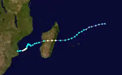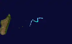 Fabienne existed from February 11 to February 25. On February 18, Fabienne passed just west of Rodrigues, producing wind gusts of 254 km/h (158 mph). The storm caused two fatalities on the island, as well as 16 injuries.[4][5][6]