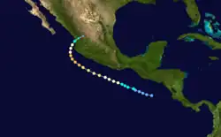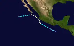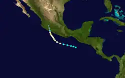 Tropical Storm Jewel formed near Mexico on August 6. Heading out to sea, it strengthened into a 70 mph (110 km/h) tropical storm. It dissipated on August 11.