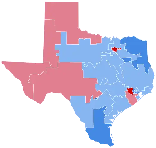 Carter won 191 of the state's 254 counties, including 74 which have never voted Democratic in any presidential race since: Martin, Grayson, Chambers, Motley, Gaines, Live Oak, Mason, Sherman, Colorado, Stephens, Lamb, Oldham, Floyd, Real, Fayette, Terry, Donley, Parmer, Dallam, Moore, Hale, Wheeler, Bailey, Armstrong, Hamilton, Goliad, Carson, Childress, Collingsworth, Wilbarger, Wilson, Castro, Eastland, Gonzales, Parker, Hood, Johnson, Anderson, Brazoria, Matagorda, Kinney, Medina, Wharton, Lavaca, Archer, Bosque, Aransas, Bell, Borden, Brown, Burnet, Callahan, Cochran, Coryell, Walker, Shackelford, King, Jeff Davis, Wichita, McLennan, Llano, Hockley, Garza, Hunt, Young, Wood, Jackson, Lynn, Howard, Ellis, and Lampasas.[3]