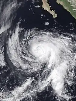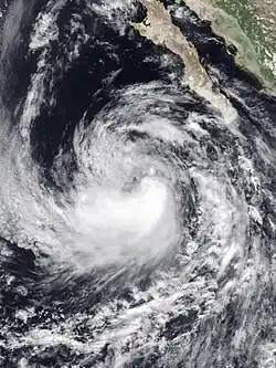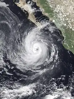 The 1980 Pacific hurricane season began on April 5, 1980, with the crossing of the International Date Line by Tropical Storm Carmen[4] and ended with the dissipation of Tropical Depression Newton on October 29.[3] Of the sixteen tropical cyclones that in the eastern north Pacific Ocean during 1980, one was a tropical depression, eight were tropical storms,[4][3] and seven were hurricanes, of which three were major hurricanes of Category or higher on the Saffir–Simpson scale. Of these systems, all except one tropical storm formed east of 140°W in the eastern Pacific proper.[3] These totals are below the long-term average of fifteen tropical storms, nine hurricanes, and four major hurricanes.[5] Two tropical cyclones existed in the central Pacific, both of which crossed in from other tropical cyclone basins.[4] This total is below the average of four or five tropical cyclones per year.[1]