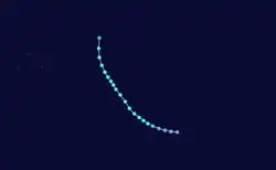 The system that was to become Tropical Cyclone Joti was first noted by the Central Pacific Hurricane Center (CPHC) during October 30, while it was located about 1000 km (620 mi) to the north-east of Port Villa in Vanuatu.[8][9] Over the next day, the disturbance gradually developed further, as its outflow increased and atmospheric convection surrounding the system organized.[8] The disturbance was subsequently named Joti at 00:00 UTC on November 1, by the FMS as it had developed into a tropical cyclone.[8] As a result, this made Joti one of the earliest tropical cyclones ever recorded within the basin.[8] After it was named, Joti continued to develop as it completed a cyclonic loop, before it started to move south-westwards towards Vanuatu during November 2.[8][9]