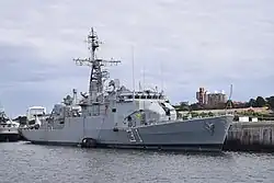 After firing a rocket at an amphibious vehicle heading to Yorke Bay,[46] York decided to withdraw his section and proceeded to booby trap their Carl Gustaf 8.4cm recoilless rifle, before paddling their Gemini assault boat north across Port William. As he did so, York said they were chased and fired upon by an Argentine warship (either the corvette ARA Drummond or Granville). His initiative led to the Gemini reaching an anchored Polish fishing vessel and hiding the small assault boat under her shadow. They patiently waited for a chance, before moving to the shore and landing on a small beach.[25][46] Argentine sources say the Drummond laid down suppressing fire on a cove north of Port William where unidentified personnel had been spotted, in support of Cabo San Antonio, whose crew had reported a "missile falling short to starboard", apparently launched from the area.[47] Other Argentine navy's reports claim that the action at Port Williams was carried out by ARA Granville.[48]