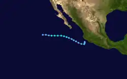 During the 1983 season, a total of 21 named storms formed,[3] which was well-above the long-term average of 15.[4] However, this total was slightly less active than the 1982 Pacific hurricane season, which saw a then-record 22 storms form.[5][6] However, 1983 was at that time the most active season in the Eastern Pacific Hurricane Center (EPHC) warning zone,[7] but this record itself was surpassed during the 1985 Pacific hurricane season,[8] and again in the 1992 Pacific hurricane season.[9] Additionally, 12 storms reached hurricane intensity, which was above the average of eight.[7] Of the 12 hurricanes, eight attained Category 3 intensity or higher on the SSHWS.[4] The season started on May 21 with the formation of Adolph and ended on December 9, with the dissipation of Hurricane Winnie. Lasting 201 days, 1983 was the longest season on record. There were a total of 1,238 storm hours, which was the most in four years.[7] Despite the activity in the EPHC's warning responsibility, only two storms formed in the Central Pacific Hurricane Center (CPHC)'s area of responsibility, both of which stayed depressions.[10] A moderate El Niño was present throughout the season, with water temperatures across the equatorial Central Pacific was nearly 5 °F (0.6 °C) above normal.[11] The Pacific decadal oscillation (PDO) was in a warm phase during this time period.[12] Both of these factors are known to enhance Pacific hurricane season activity. Furthermore, 1983 was in the middle of an era where all but the 1988 Pacific hurricane season was near or above average.[13]