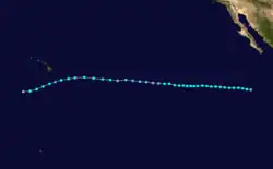 The 1983 Pacific hurricane season was the longest season ever recorded at that time. It was a very active Pacific hurricane season. The season started on May 15, 1983 in the eastern Pacific, and on June 1, 1983 in the central Pacific, and lasted until November 30, 1983. These dates conventionally delimit the period of each year when most tropical cyclones form in the northeastern Pacific Ocean.[1] During the 1983 season, there were 20 named storms, which was slightly less than the previous season. Furthermore, twelve of those storms became hurricanes. And eight of the storms reached major hurricane status, or Category 3 or higher on the Saffir–Simpson hurricane wind scale (SSHWS). The decaying 1982–83 El Niño event likely contributed to this level of activity. That same El Niño influenced a very quiet Atlantic hurricane season.