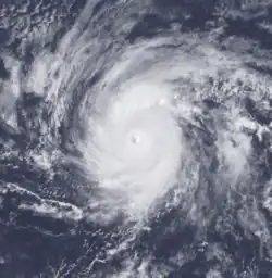Hurricane/Typhoon Peke caused no damages or deaths.[4][32] However, was also the first tropical cyclone of hurricane strength to cross the dateline since Hurricane Sarah (1967) to cross the dateline at that strength.[32] In addition, Peke was the third tropical cyclone in three years to exist on both sides of the dateline, after 1985's Typhoon Skip[33] and 1986's Typhoon Georgette.[34]