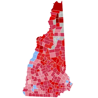 As of the 2024 presidential election, this is the last election in which a Republican has been able to win every county within the state as well as the last time the counties of Cheshire, Grafton, Merrimack and Strafford voted for a Republican presidential candidate.[2] This is also the last time that New Hampshire was won by double digits by either party, (although future Democratic candidates in both Bill Clinton, and later Barack Obama came incredibly close to doing so during their landslide victories in 1996, along with 2008).