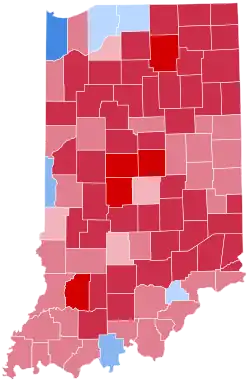 | Tippecanoe | 26,106 | 56.39% | 18,220 | 39.36% | 1,969 | 4.25% | 7,886 | 17.03% | 46,295 |