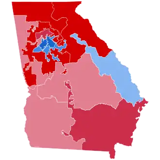 In this election, Georgia voted 14.14% to the right of the nation at-large.[2] Bush remains the last Republican to win Metro Atlanta in a presidential election.