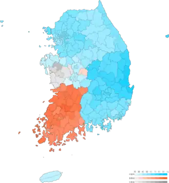 South Gyeongsang 4,498 48.1 4,748 50.8 76 0.8 30 0.3 9,352