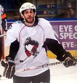 The Wilkes-Barre/Scranton Penguins saw roster changes during the 2013 off-season, including the loss of the previous year's top scorers Chad Kolarik, Trevor Smith and Riley Holzapfel.[1] Other off-season departures included Alex Grant,[2] Derek Nesbitt,[3] Joey Mormina, Warren Peters, and Brad Thiessen.[4] The Penguins signed several new players, including forwards Mike Carman,[5] Chris Conner, Nick Drazenovic, Andrew Ebbett,[4] Pierre-Luc Létourneau-Leblond,[6] Denver Manderson, Christiaan Minella,[7] and Harry Zolnierczyk; defensemen Brendan Mikkelson,[4] Scott Harrington, Olli Maatta,[8] Peter Merth, Dustin Stevenson,[7] Harrison Ruopp,[9] Nick D'Agostino and Clark Seymour;[10] and goaltenders Peter Mannino,[11] and Eric Hartzell.[12] Also returning this season is Derrick Pouliot, the 19-year-old defenseman who played in a single Penguins playoff the previous year.[13] The team also re-signed forwards Zach Sill, Paul Thompson,[14] and Brian Gibbons.[15] Out of 17 players from the 2012–13 roster with experience in more than 200 professional games, only Tom Kostopoulos and Sill remained this season.[1] Kostopoulos was named the team's new captain.[16]