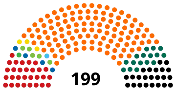 - 199 seats (decreased from 386, so the number of seats is 51.6% of the original)[50]