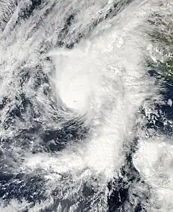 Continued, though less prolific, activity extended through September with four hurricanes developing that month. ACE values remained 45% above-average by the end of the month.[16] Following the rapid intensification of Hurricane Simon to a Category 3 hurricane during the afternoon of October 4, the 2014 season featured the highest number of major hurricanes in the Eastern Pacific basin since the advent of satellite imagery. With eight such storms east of 140°W, the year tied with the record set in the 1992 season.[17][18] However, this record was surpassed by the 2015 Pacific hurricane season.