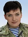 - ^ Savchenko was only the leader of the Batkivshchyna list. The party chairwoman at that time was Yulia Tymoshenko. Savchenko was in prison in Russia at the time of her election, but was pardoned by the Russian president and exchanged in 2016.